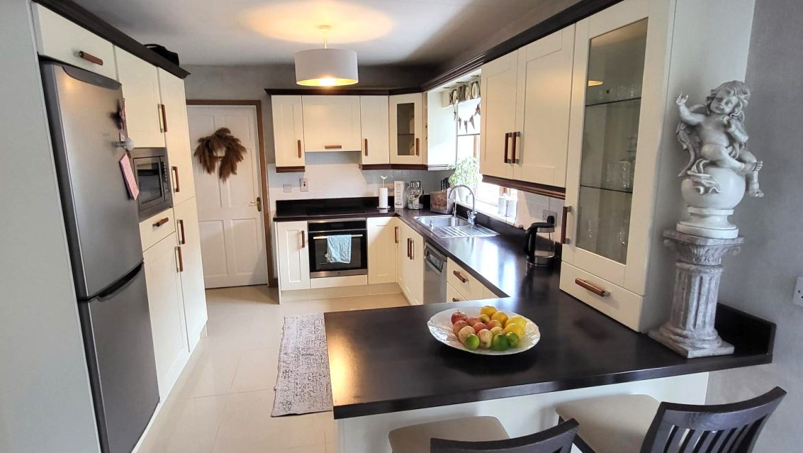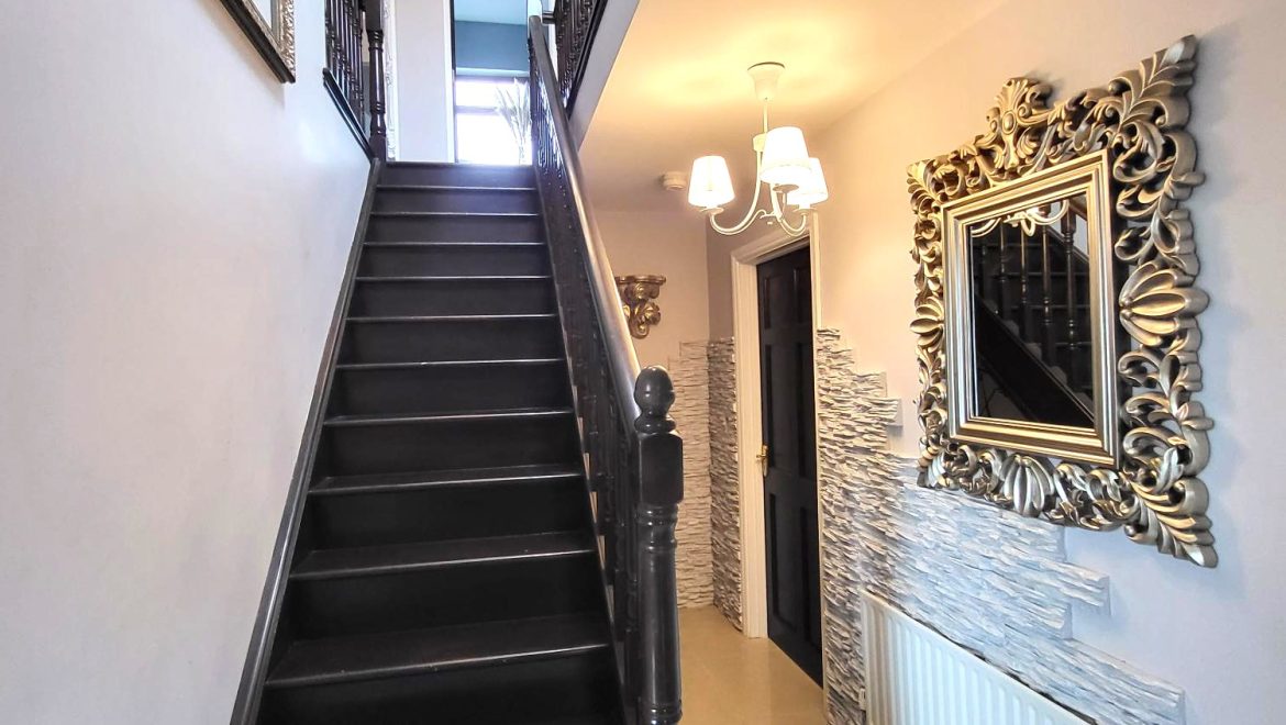 On entering this impressive property you are met with a large welcoming entrance hall with cream porcelain tiling and impressive staircase which leads to the kitchen/dining and living room. The kitchen acts as the heart of this home with contemporary cabinetry and integrated appliances all of which leads off to the all-important boot / utility room and downstairs W.C. Overlooking the front of the property is a tastefully decorated living room with a feature stone wall, oak mantel and wood burning stove.