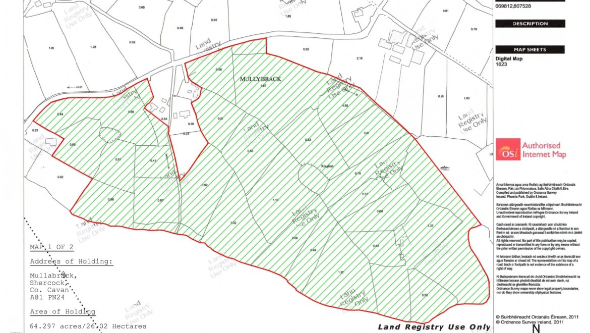 c.26.02ha (c.64.297 Acres) and Kilmacaran c.15.70ha (38.80 Acres), Shercock, Co. Cavan.
