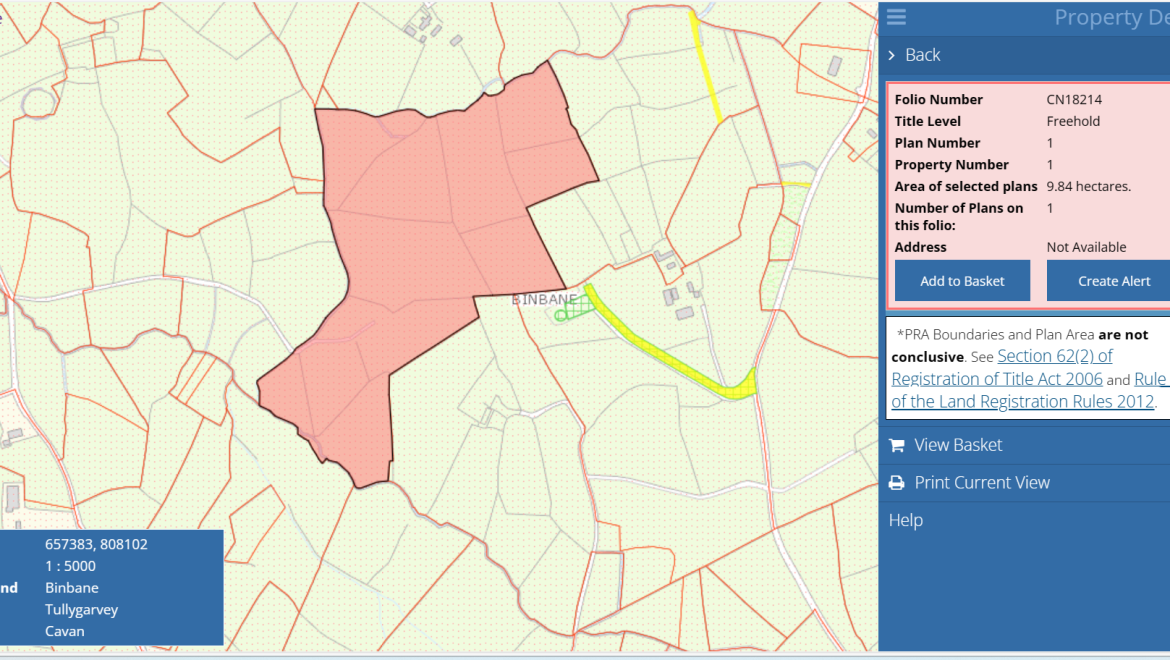 Solicitor with carriage of sale: Mr. Damien Rudden Solicitor, Corraneary, Stradone, Co.Cavan,